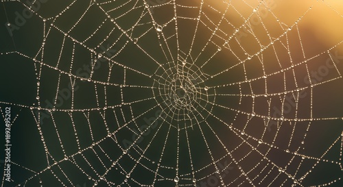 © Marc Kunze, Obraz premium spider web with dew drops close-up on green background