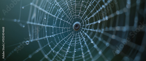 © HK, Fototapeta premium Spider web with dews in a blurred forest background