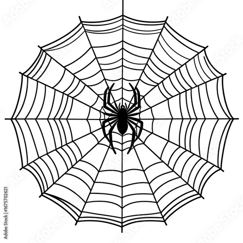© MilinaArt, Obraz premium Spider Web with Hanging Spider