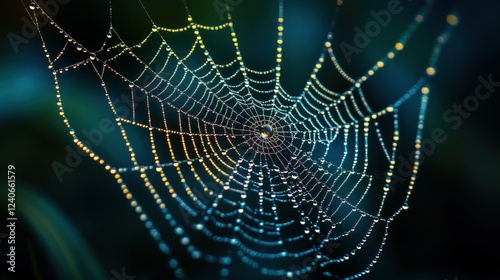 © surapong, Naklejka premium Spider web with spider in the center showcasing intricate patterns and natural beauty in sunlight