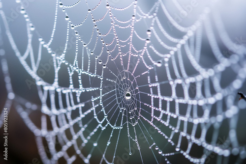 © Ekaterina Shvaygert, Naklejka premium Spider web with the drops of dew