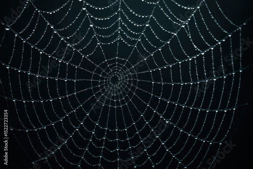 © Bakhtiyar, Fototapeta premium Spider web with water droplets isolated on transparent background.