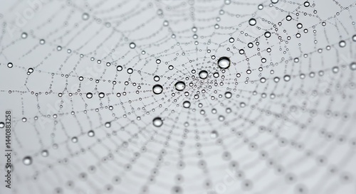 © mh, Obraz premium Spiderweb Covered in Dew Drops Close-up
