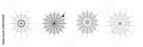 Fototapeta premium Spiderweb set, Black Silhouette Vector Illustration.