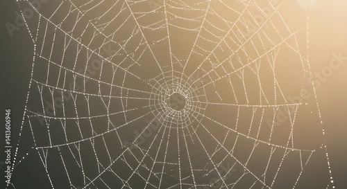 Obraz premium Spiderweb with Dew Drops Sparkling in Soft Light