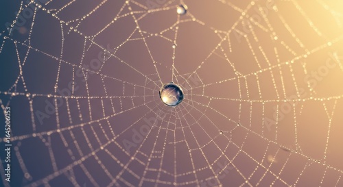 © Melankolis Image, Fototapeta premium Spiderweb with Water Droplets Shining in Sunlight