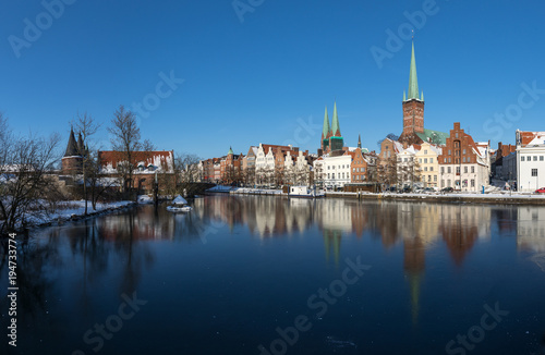 Fototapeta premium Spiegeleis an der Lübecker Obertrave
