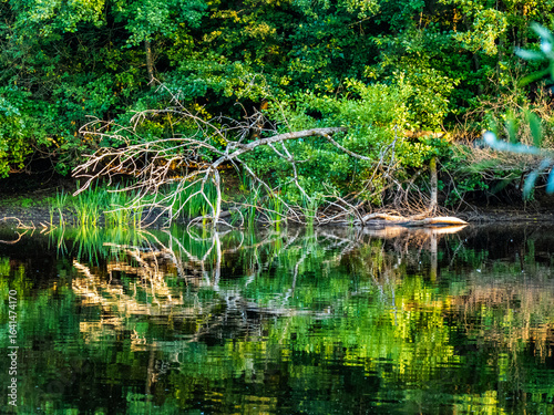 © focus finder, Obraz premium Spiegellung in einem Waldsee