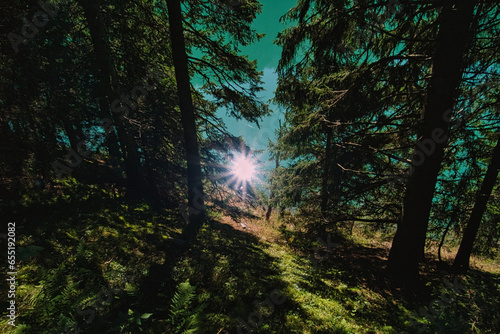 © fred, Fototapeta premium Spiegelung der Sonne im Bergsee