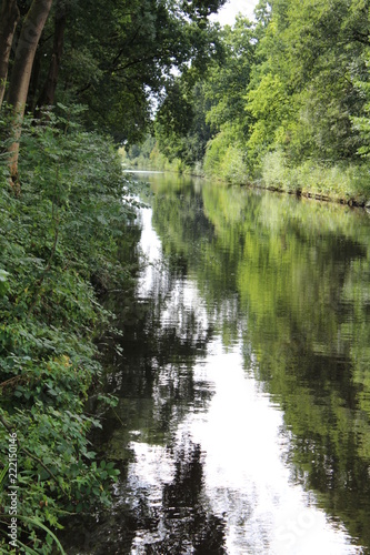 Fototapeta premium Spiegelung im Ems-Jade-Kanal in Deutschland