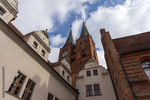 Fototapeta premium Spiers of St. Mary church. Hansestadt Stendal is a medieval town in Saxony-Anhalt state. Germany.