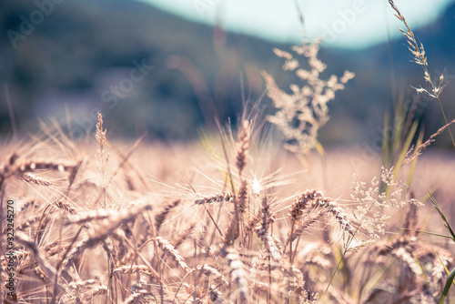 Fototapeta premium Spikelets of a wheat field close-up on a summer day