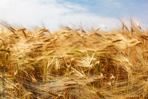 Fototapeta premium Spikes of wheat in the field on a sunny day.