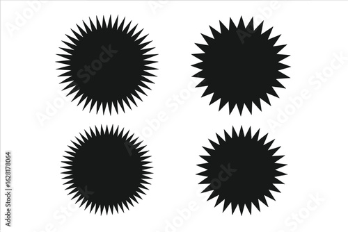 © Pat, Fototapeta premium Spiky circle vector set starburst badge collection jagged round shapes graphic design elements decorative burst icons explosion rays abstract forms