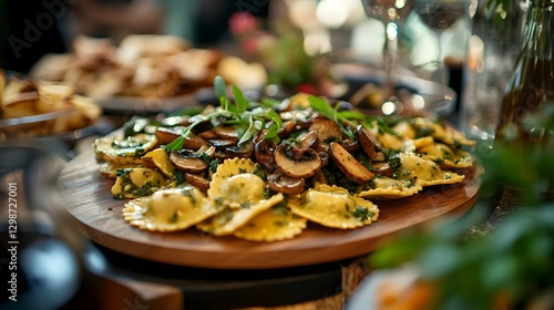 © LemonellArt, Naklejka premium Spinach Ravioli with SautΘed Mushrooms