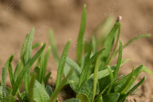 Fototapeta premium Spinach young seedlings closeup, organic spinach at spring.