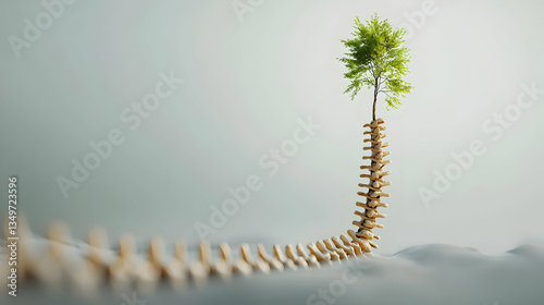 Obraz premium Spine With Growing Tree In Light Beige Background