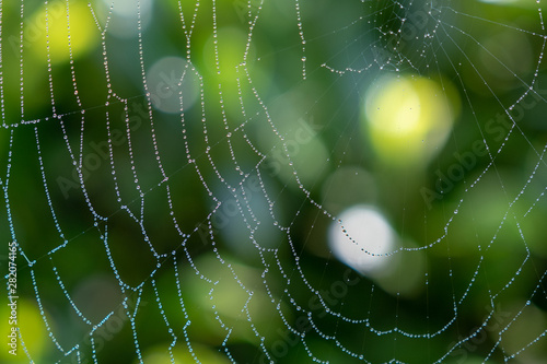 © Tobias, Naklejka premium Spinnennetz mit Wassertropfen
