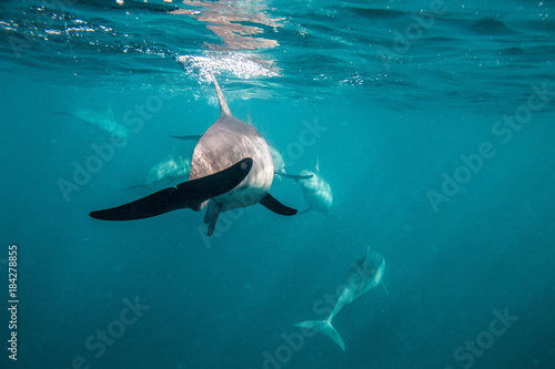 © Christopher, Fototapeta premium Spinner Dolphins Stenella longirostris Pull Focus Photographed near the coast of Mauritius in the indian ocean while interacting