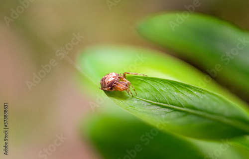 © S Satapathy, Fototapeta premium Spinning a web on a rainy early afternoon