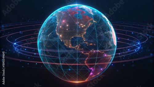 © hathairat, Obraz premium Spinning Globe with Data Governance and Technology Standards Concept