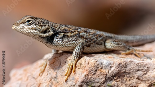 Naklejka premium Spiny lizard sunbathing on a desert rock