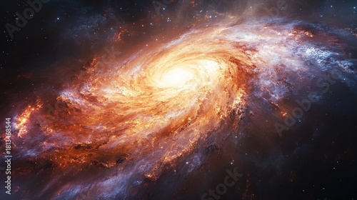 Obraz premium Spiral galaxy ablaze in space