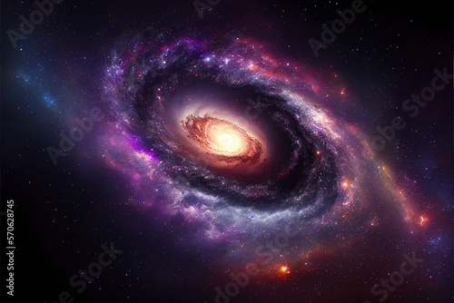 Naklejka premium Spiral galaxy background. A view from space to a spiral galaxy and stars. Universe filled with stars, nebula and galaxy. Generative AI.