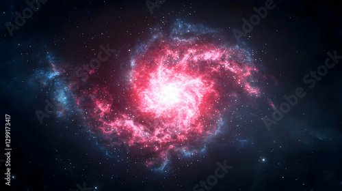 © artzone, Fototapeta premium Spiral Galaxy Displaying Red And Blue Hues Against A Dark Black Space Background