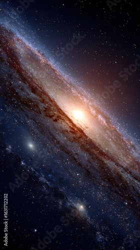 Fototapeta premium Spiral galaxy edge, vibrant colors, cosmic dust