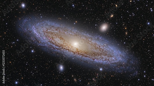 Fototapeta premium Spiral galaxy in deep space, stellar background, cosmic dust, for astronomy education
