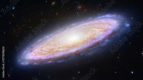 Naklejka premium Spiral galaxy in deep space with bright core and nebulous surroundings