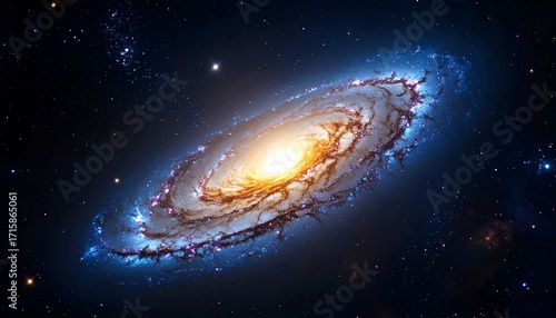 Naklejka premium Spiral galaxy in deep space with galactic arms bending around