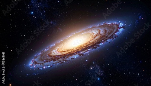 Naklejka premium Spiral galaxy in deep space with galactic arms bending around