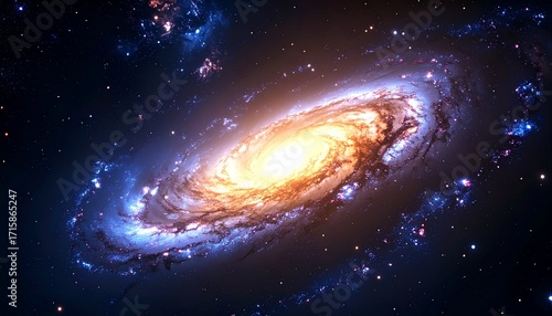 © 호균 최, Fototapeta premium Spiral galaxy in deep space with galactic arms bending around