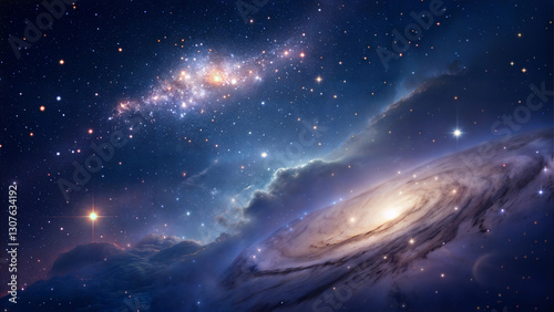 © MithunDeb343, Fototapeta premium Spiral galaxy in deep space with glowing stars and nebulae