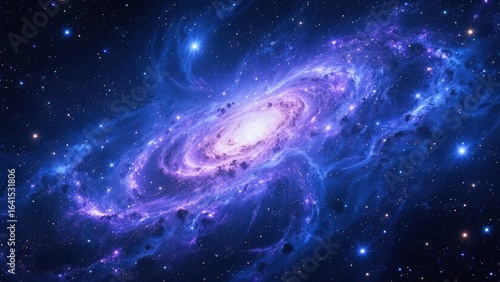 Naklejka premium Spiral Galaxy in Deep Space with Vibrant Blue and Purple Hues