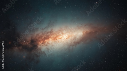 Fototapeta premium Spiral Galaxy In Teal And Orange Hues Against Dark Starry Background