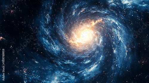 Obraz premium Spiral galaxy swirling in deep space filled with stars and nebulae.