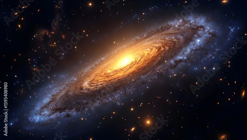 © ngalong project, Fototapeta premium Spiral galaxy with bright center and swirling arms in dark space.