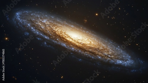 Fototapeta premium Spiral galaxy with bright core and dust lanes in deep space.