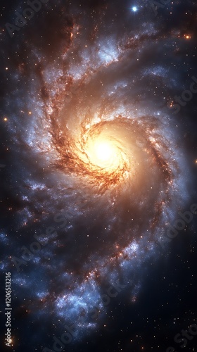 © Manan, Fototapeta premium Spiral galaxy with bright core and swirling arms.