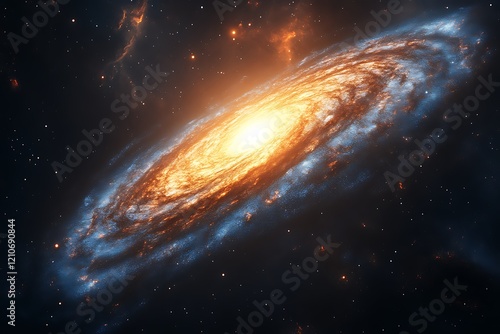 Fototapeta premium Spiral galaxy with bright core and swirling arms in deep space. (1)