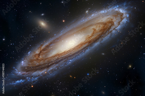 © Dawid, Naklejka premium Spiral galaxy with vibrant colors and glowing arms, astronomy concept.
