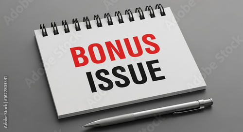 Naklejka premium Spiral notepad with "Bonus Issue" text, red "Bonus" and black "Issue", pen...