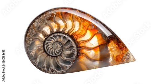 © ddaremmth, Obraz premium Spiral seashell on a white background showcasing natural texture and shape
