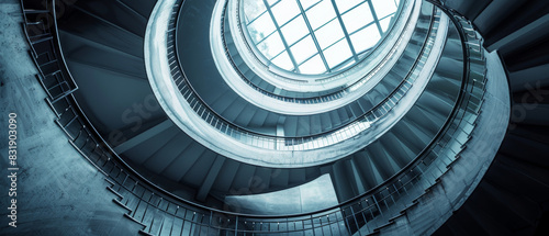 © Ai Studio, Obraz premium Spiral staircase in monochrome tones, emphasizing architectural form.