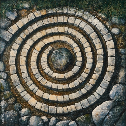 © Ibnu, Fototapeta premium Spiral stone path in garden