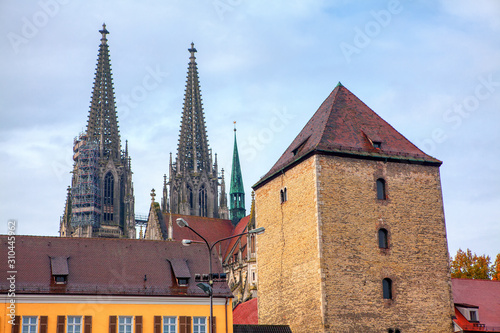 Fototapeta premium Spire of St Peter Cathedral in Regensburg Germany