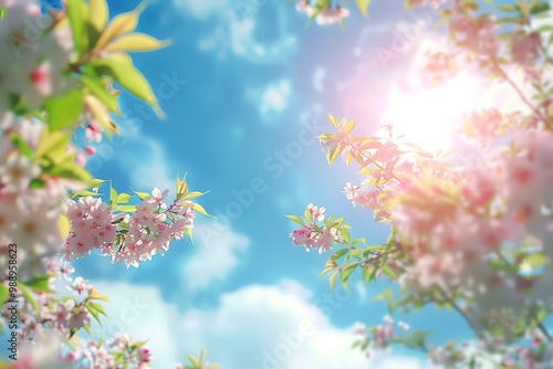 Fototapeta premium Spiring nature with blurred background with blue sky
